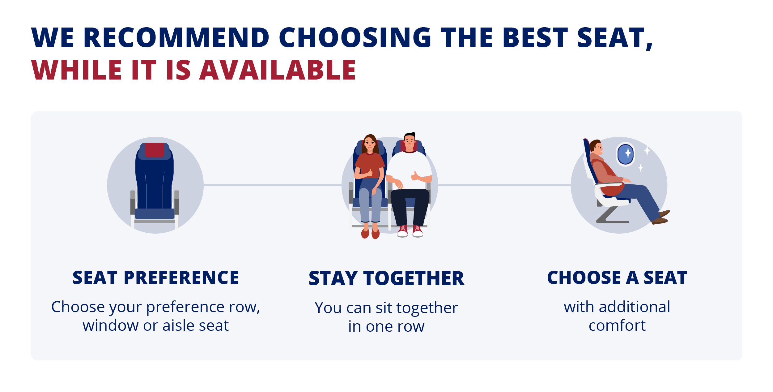 Important! The purchase of the "Seat Selection" service is not the final step for boarding a flight, a boarding pass is required that is issued after check-in is completed.